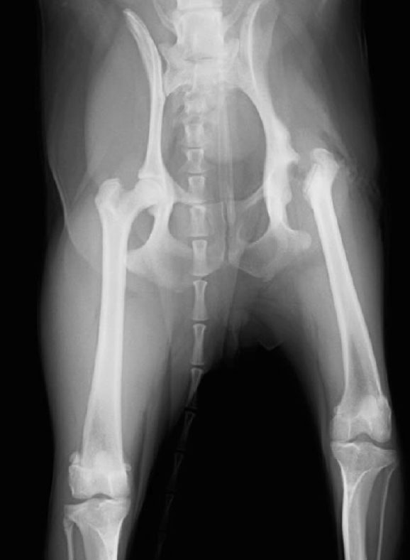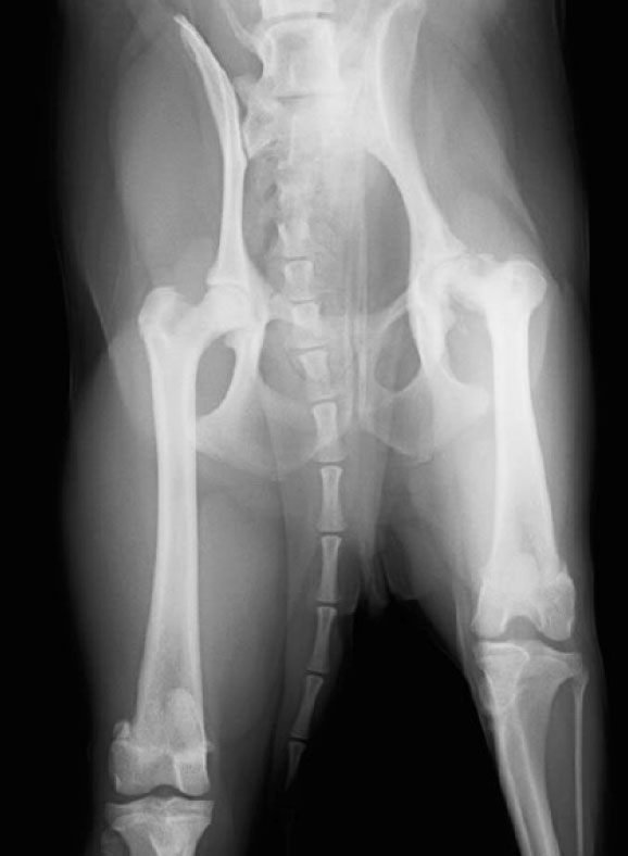 FHO(Femoral Head Ostectomy)は、痛みの原因となっている関節の接触・摩擦を取り除くため、大腿骨頭を骨切りする手術です。切除によって本来の関節機能は失われますが、筋肉や皮下組織を再び縫い合わせて繊維性の偽関節を形成するので、失われた関節の働きを後肢の筋肉が代替するようになります。術後のリハビリは必要ですが、体重の軽い小型犬では比較的短期間で機能回復が期待できる手術です。