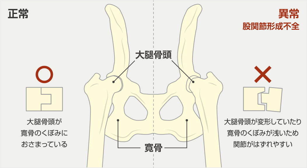 異常が認められる股関節(股関節形成不全)とは…