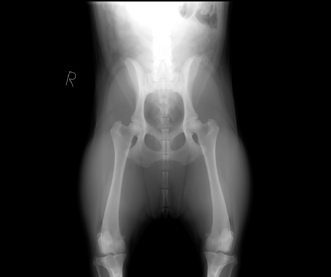 | 若齢(2歳以下) | レントゲン検査で股関節形成不全が発見されたが無症状 |