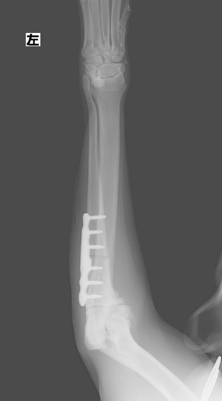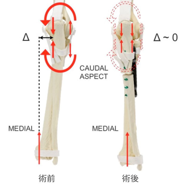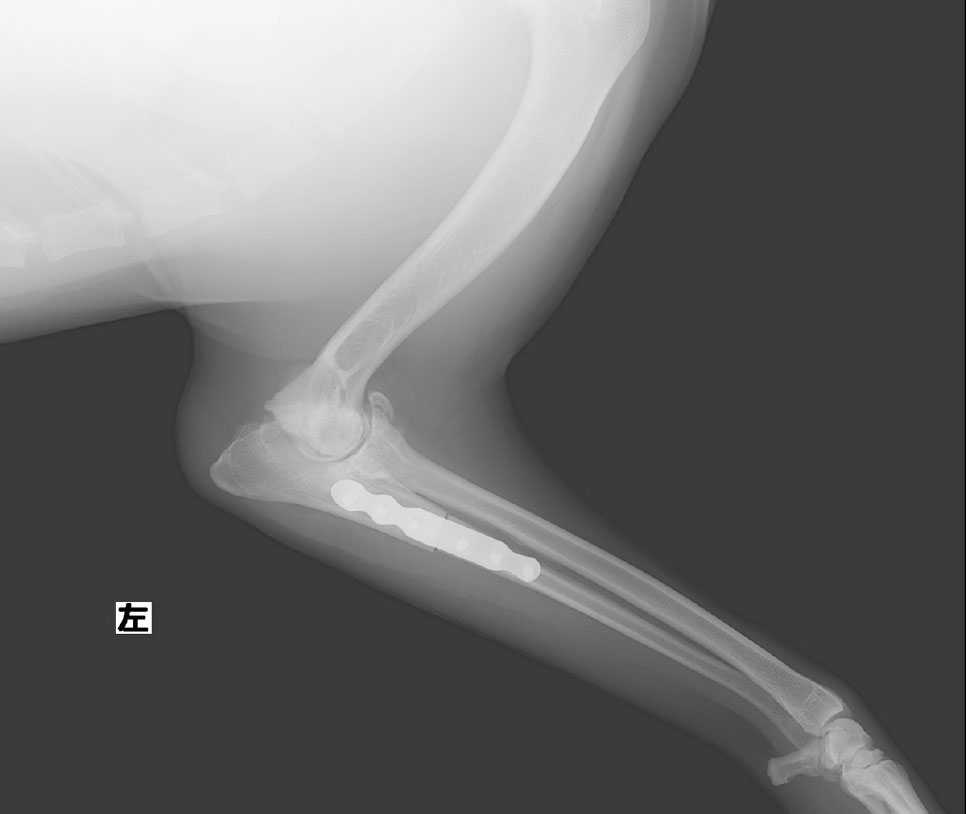 前肢尺骨を骨切りして角度を矯正、荷重バランスを均等に。