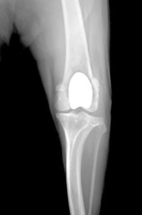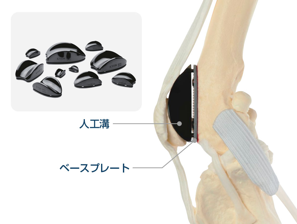 滑車溝をインプラントに置き換えて、膝関節を安定化。