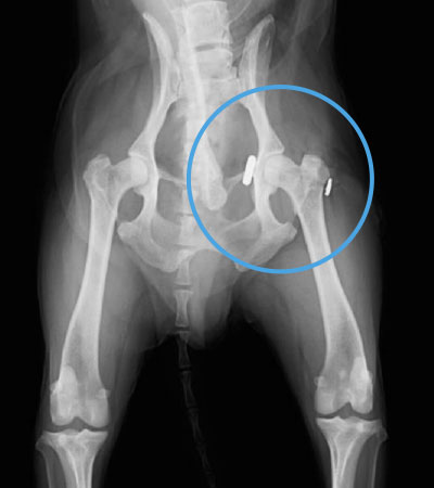 脱臼(術前)大腿骨が寛骨臼から大きく外れて関節機能が失われています